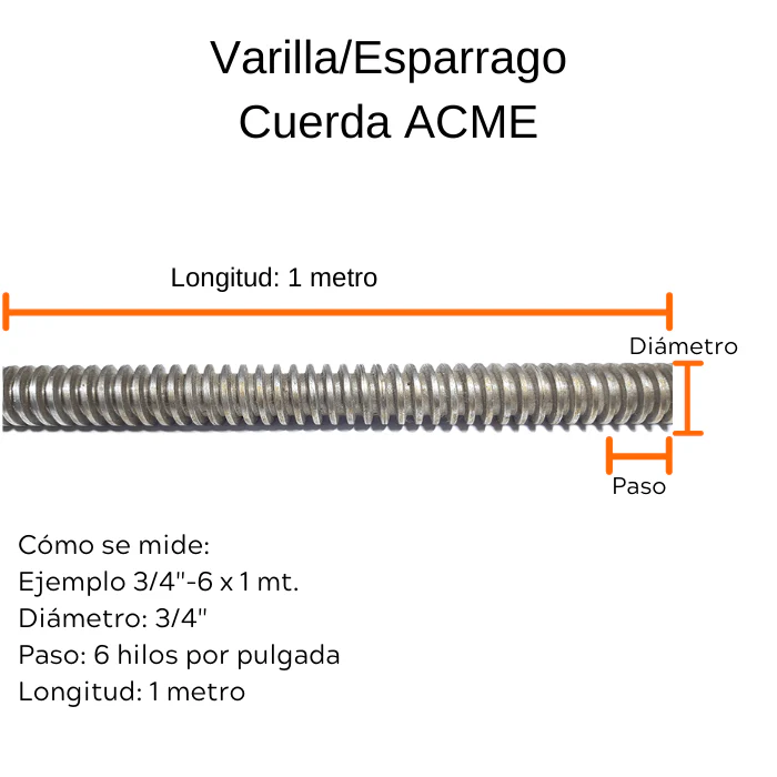 - Tipo de rosca: Rosca ACME trapezoidal